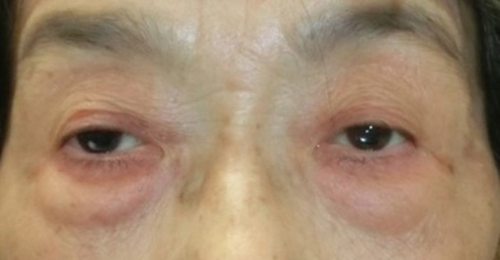 ネオメドロールEE眼軟膏によって、写真に示すような眼瞼皮膚炎が遷延しているケースは少なくありません。