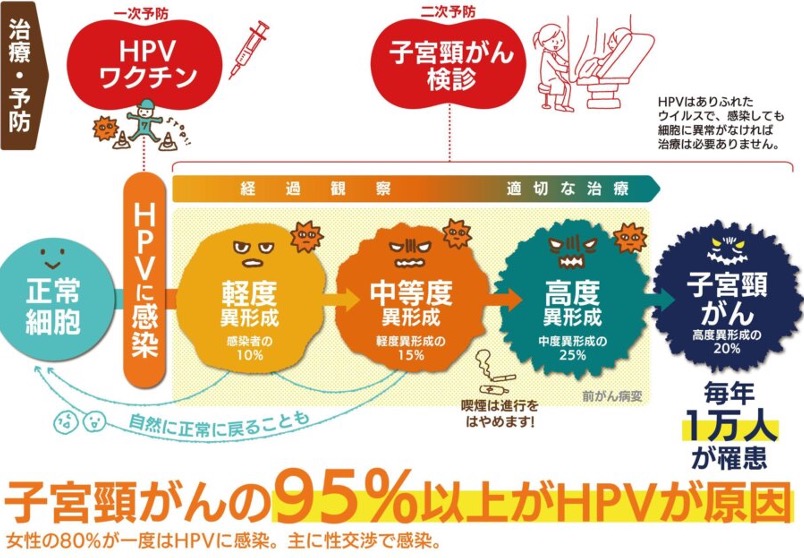 多くの場合、HPV感染は一時的で、ウイルスは自然に排除されますが、感染した状態が長い間続くと、子宮頸がんを発症することがあります。